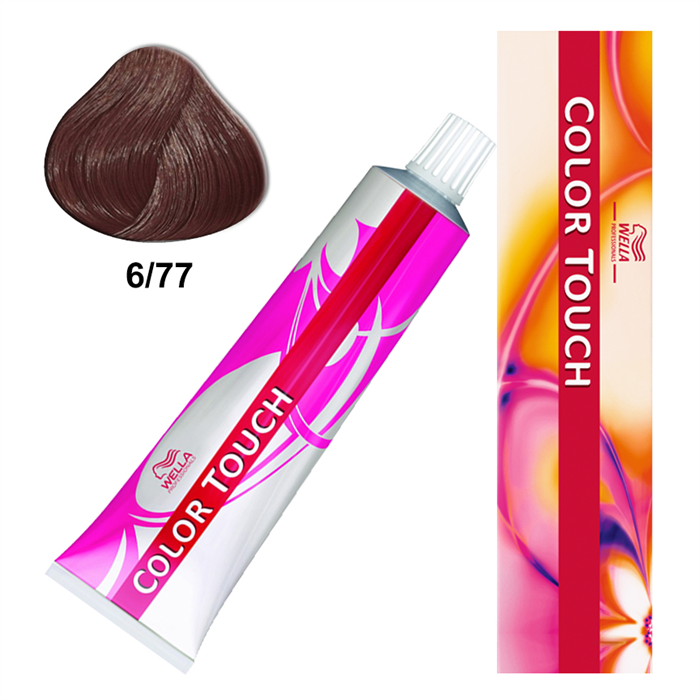 Color Touch 6/77 es un tinte semipermanente sin amoniaco que da un rubio oscuro con un matiz marrón intenso (castaño), no es un “rubio extra claro”, sino un tono profundo que aporta brillo espectacular y cobertura de canas (hasta 50-70%), con fórmulas veganas y tecnología Metal Purifier para proteger el cabello, dejando un color vibrante y de bajo mantenimiento.